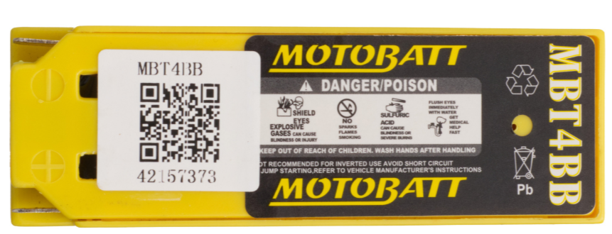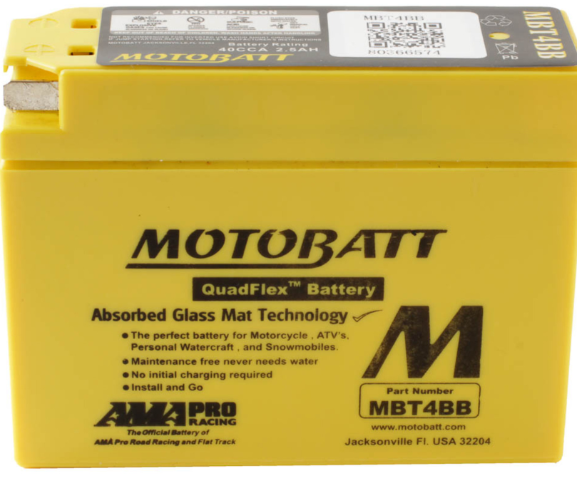 Your Motobatt is a Factory Activated battery, it comes to you pre- conditioned and fully charged for optimum performance and ready to install out of the box. 80% of early Powersports battery failure is caused by faulty activation of the dry battery plates. Additionally, you never have to mess with acid or top up fluid levels or remove corrosion from the terminals caused by gassing, which are all common with standard flooded battery types.