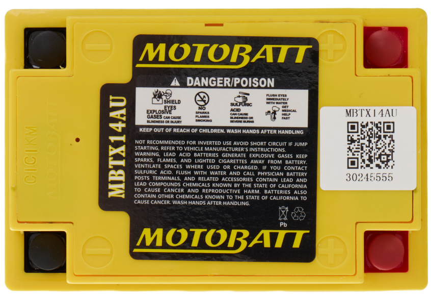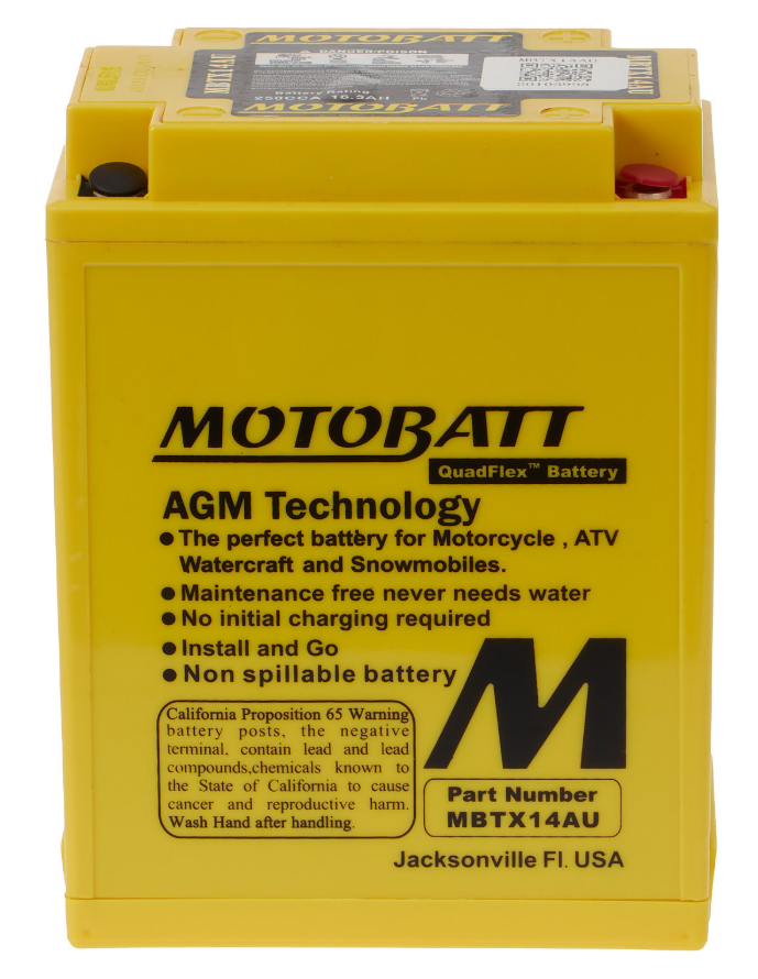 Your Motobatt is a Factory Activated battery, it comes to you pre- conditioned and fully charged for optimum performance and ready to install out of the box. 80% of early Powersports battery failure is caused by faulty activation of the dry battery plates. Additionally, you never have to mess with acid or top up fluid levels or remove corrosion from the terminals caused by gassing, which are all common with standard flooded battery types.
