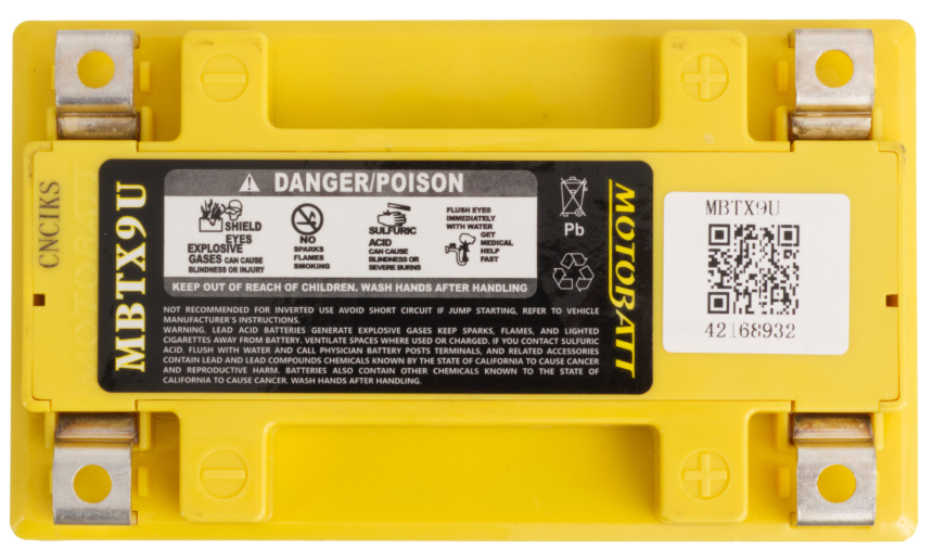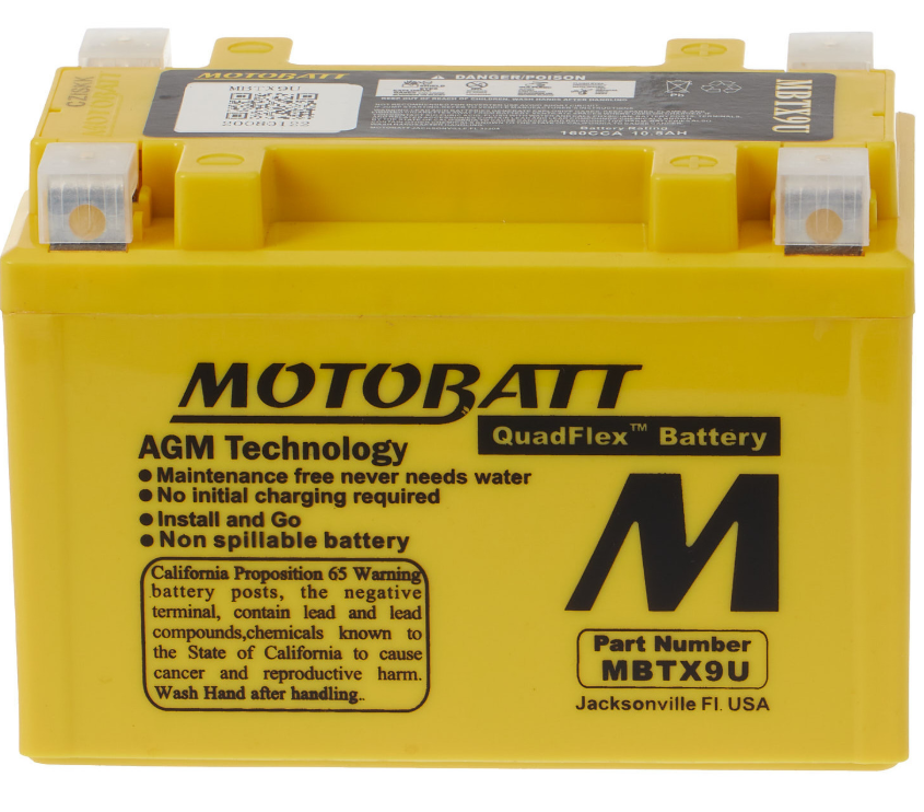 Your Motobatt is a Factory Activated battery, it comes to you pre- conditioned and fully charged for optimum performance and ready to install out of the box. 80% of early Powersports battery failure is caused by faulty activation of the dry battery plates. Additionally, you never have to mess with acid or top up fluid levels or remove corrosion from the terminals caused by gassing, which are all common with standard flooded battery types.